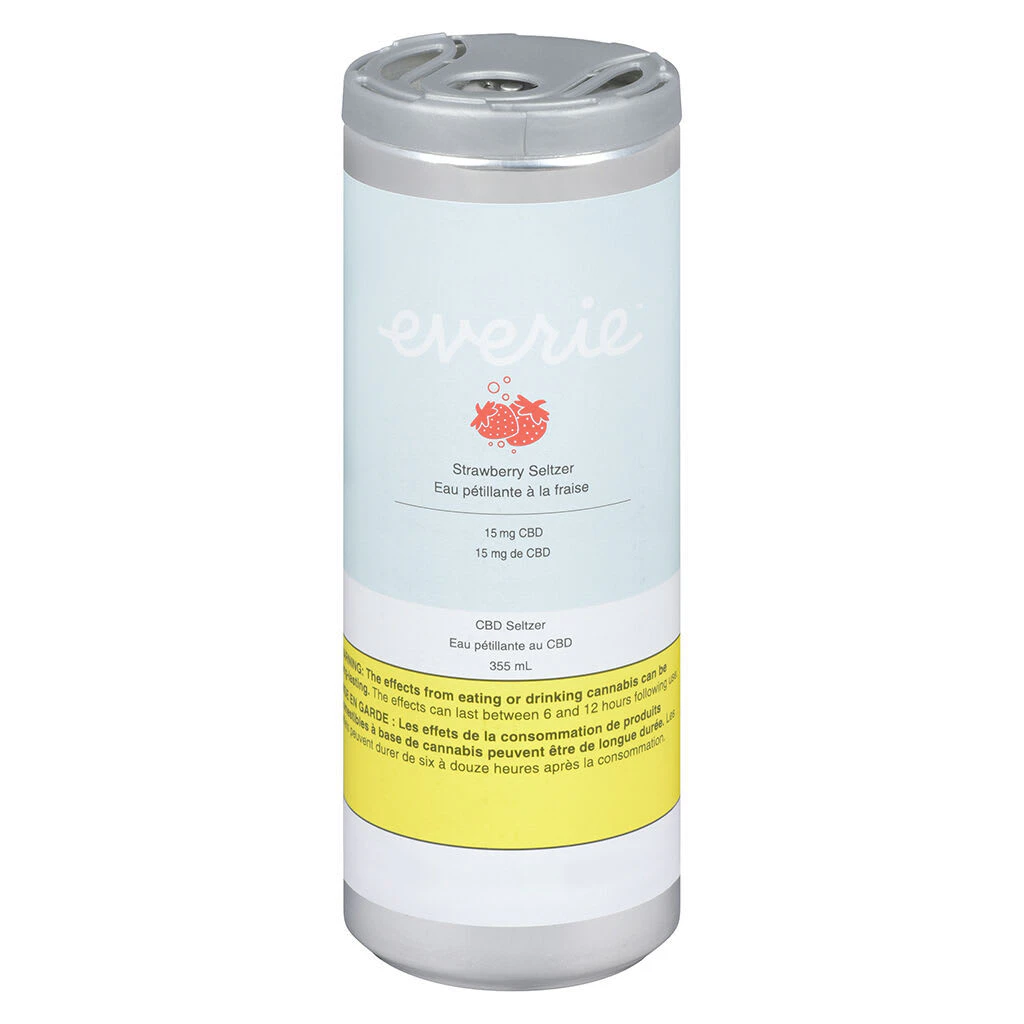 Everie Strawberry CBD Seltzer is a light, bright sparkling water with 15 mg of 98% pure CBD per can and zero compromises. Fresh and fizzy on the tongue and bursting with juicy, whole-strawberry flavour, these bubbles are worth savouring. Available in 355 mL recyclable cans. Contains small amounts of THC. Best enjoyed chilled or over ice.